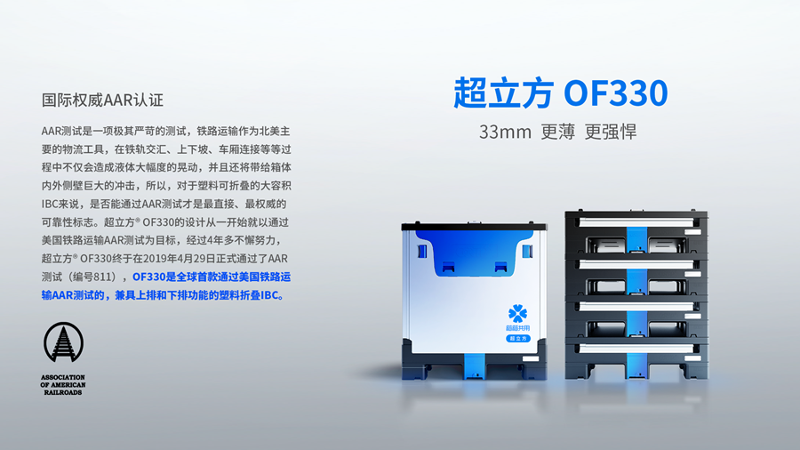 箱箱共用,如何成为中国工业智能循环包装界的龙头?其旗下超立方®OF330是全球首个通过物流箱领域“魔鬼测试”(美国铁路运输AAR测试)的IBC(中型散装容器)就是其工程化能力的有力验证,配合其部署全国的百网千驿循环服务网络,实现了近100万各类智能循环箱资产的运营和服务。
