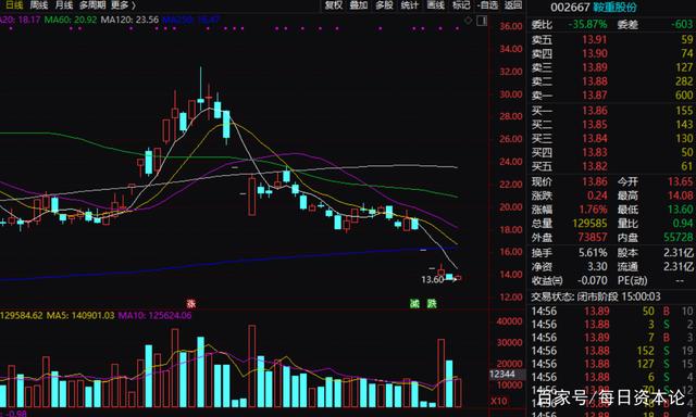 1月14日,鞍山重型矿山机器股份有限公司(下称鞍重股份)股价小幅低开后,震荡上行,全天呈现反弹走势。截至当日收盘,其股价为13.86元,上涨1.76%,总市值32.03亿元。