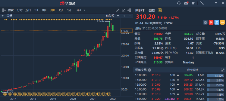 四、微软市值可能在1年内达到3万亿美元