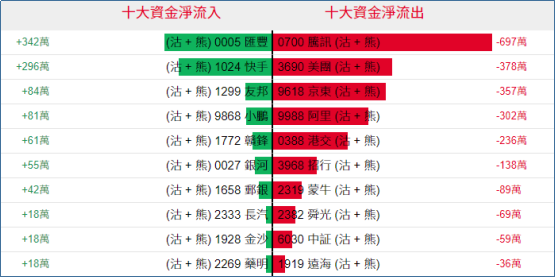 淡仓(认沽证及熊证)方面,上周五相关个股淡仓资金净流入规模较小,腾讯相关淡仓获697万港元资金净流出。