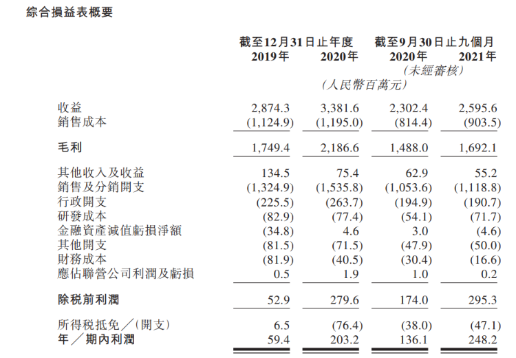 数据披露,2019年、2020年及截至2021年9月30日止九个月,公司分别产生研发开支人民币82.9百万元、人民币77.4百万元及人民币71.7百万元,分别占收益的2.9%、2.3%及2.8%,占比高于行业平均水平。