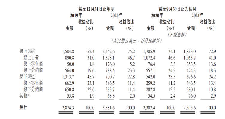 线上渠道中,上美集团除了同天猫及京东等主要电商平台长期合作,还积极发掘抖音及快手等新兴媒体平台中的新增长潜力。数据显示,上美集团2020年线上销售额为人民币25.43亿元,较2019年同比增长69.0%。截止2021年9月30日止九个月,公司线上零售额位居国货品牌企业前三。