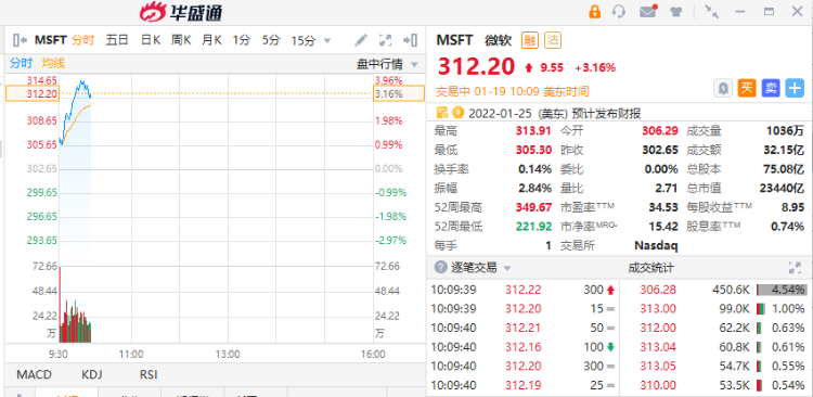 华盛资讯1月18日消息,美股盘中,纳指上涨近1%,明星科技股走势回暖,微软(MSFT)涨超3%,现报312.20美元,此前宣布收购游戏巨头动视暴雪。