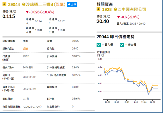 2、看错方向:金沙瑞通二三购(29044.HK),周二下跌18.4%。