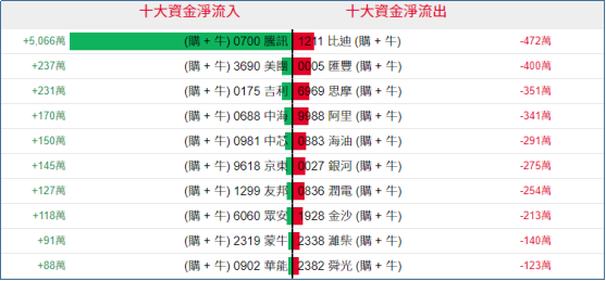 好仓(认购证及牛证)方面,周二腾讯相关好仓单日获5066万港元资金净流入;银河相关好仓则单日见1045万港元资金净流出套现。