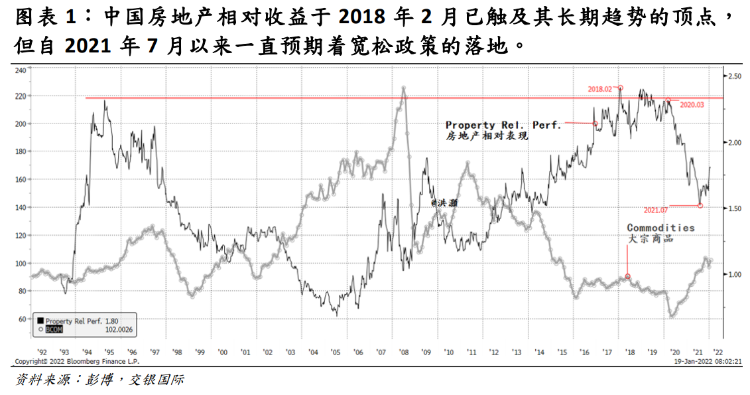 许多人将最近的双降解读为一项“拯救”房地产行业的举措。但在 2018 年初“房住不炒”的政策宗旨宣布后不久,房地产行业的相对表现就已经触顶。同时,尽管 2020 年初新冠疫情爆发后出台了积极的宽松政策,但房地产行业的相对表现却每况愈下,直到2021年7月达到一个短周期性底部(图表 1)。