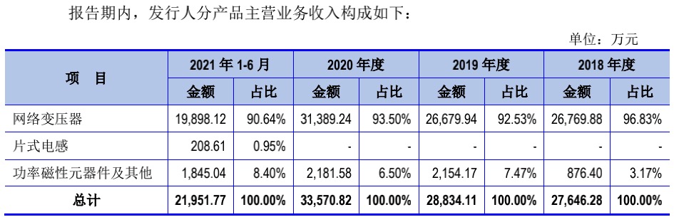 美信科技称,报告期内发行人顺应市场需求,逐步推出片式电感等新产品,但公司产品结构仍然以网络变压器为主。若网络变压器的行业需求或供给出现重大波动,或者公司新产品研发无法达到预期,将对公司经营业绩产生不利影响,公司面临产品结构较为单一的风险。“公司所处行业属于充分竞争行业,若竞争对手通过技术创新、经营模式创新等方式或潜在竞争对手通过技术升级、经营规模的扩大,不断渗透公司的主要业务领域和客户,将面临更加激烈的市场竞争。”
