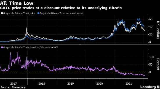 Grayscale比特币信托基金成为了加密货币遭遇抛售的最大受害者之一。