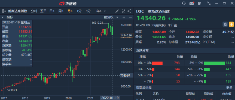 纳指近期一直呈现出螺旋下跌的趋势。据悉,昨日收跌1.15%后,纳指已较11月19日的史高下跌了10.69%,已符合通常定义的回调。此外,纳指本月已跌超8%,其上一次经历这么大的月跌幅,还是在2020年3月。