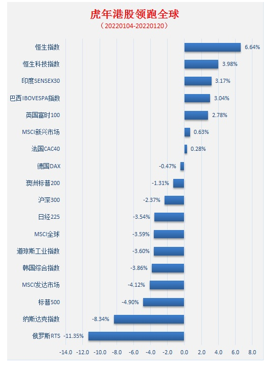 年初至今,港股同样领跑全球,恒生指数上涨6.64%,恒生科技指数上涨3.98%。