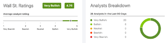 华尔街分析师似乎是这么认为的,他们的平均评级为4.76(满分为5.0),算是一个“非常看涨”的评级。