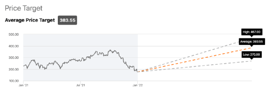 分析师的平均目标价仅略高于383美元,表明比当前水平有 100% 以上的上涨空间。