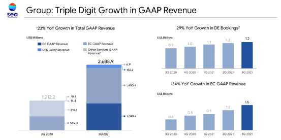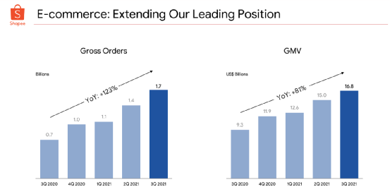 SE的电子商务部门报告总订单增长123%,总商品交易额(GMV)增长81%。