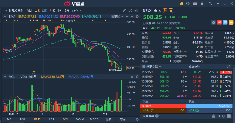 对2022年Q1新增用户数的展望是最令人失望的数字,Netflix预计的250万新增用户数大幅低于市场预期。财报发布后,Netflix盘后大跌近20%,创2020年6月以来的最低水平,市值跌去超450亿美元(约合人民币超2800亿元)。