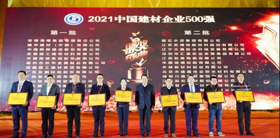 近日,由中国建筑材料企业管理协会主办的“2021年中国建材企业发展论坛”暨2021年中国建材企业500强、中国民营建材企业100强、中国最具成长性建材企业100强发布会在贵阳市举行。