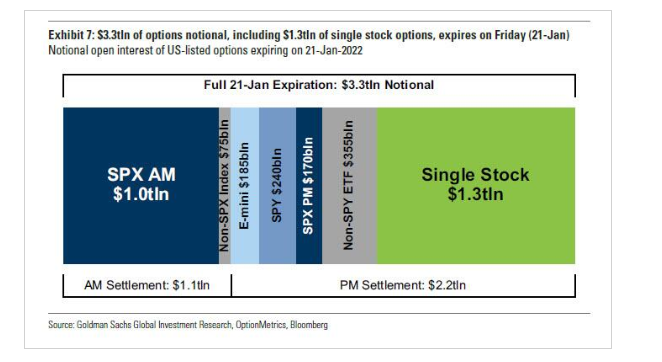 小摩预测,美联储不会在下周结束量化宽松,并且首次加息将为25个基点。然而,在美联储加息靴子正式落地之前,市场还有一个需要关心的问题。那就是,周五即将到期的、价值3.1万亿美元的期权,其中包括了约1.3万亿美元的个股期权。