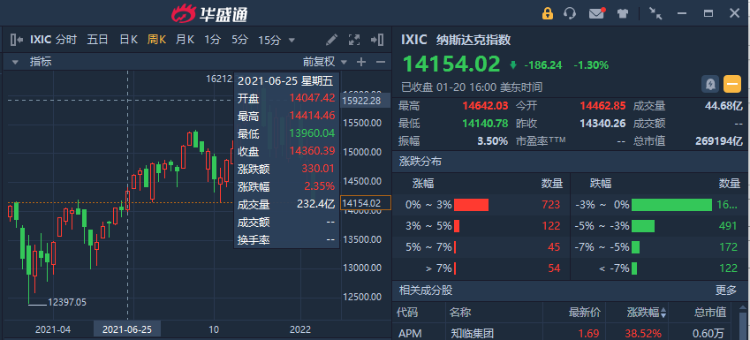 周四纳斯达克指数起初反弹回升,然而尾盘却回吐了涨幅,最终收跌;此前周三盘中反弹、最后收跌的场景再次重演。本周三也是纳指自去年3月以来首次跌入回调区域,即较最近的创纪录高位(去年11月的高点)首次回落了10%。