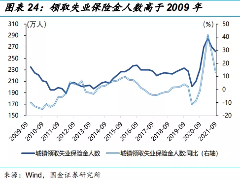 另一方面,就业压力持续存在,导致收入预期下行,进而约束消费能力。数据显示领取失业保险的人数2020年4季度以来持续处于高位,且2021年4季度以来,百度指数中“失业保险金领取条件指数”持续显著提升,表明消费行业板块的实质修复仍需要时间。