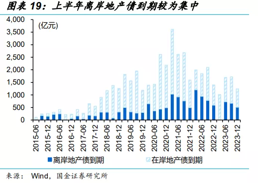 第三,上半离岸地产债到期较为集中,地产风险尚未完全释放,房地产企业的盈利端修复尚需等待。