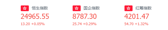 恒生指数上周涨2.39%,恒生科技指数上周涨1.76%。截至上周五收盘,恒生指数涨0.05%,报24965.55点;国企指数涨0.29%,红筹指数跌涨1.32%。恒生科技指数跌0.44%,瑞声科技跌5.72%,阿里跌3.35%,网易跌3.22%。