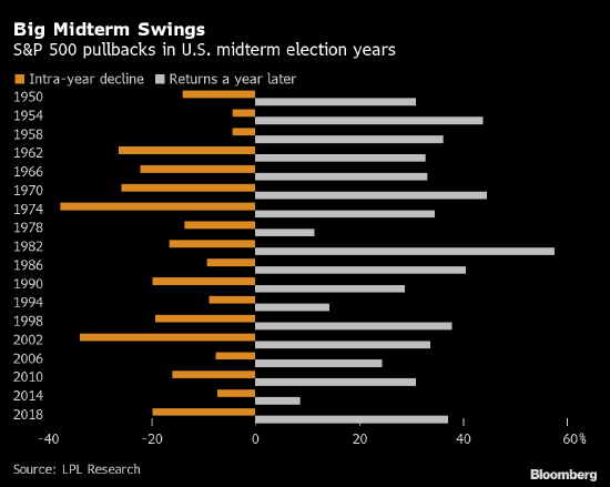今年另一个可能打击股市的因素是11月的中期选举。因为选举结果的不确定性以及随后对政策变化的影响,市场回报往往会保持低迷直至年底。