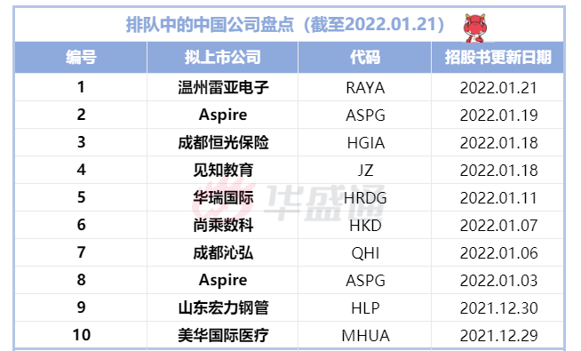 中国公司方面,上周有成都恒光保险(HGIA)和温州雷亚电子(RAYA)向SEC递交招股书: