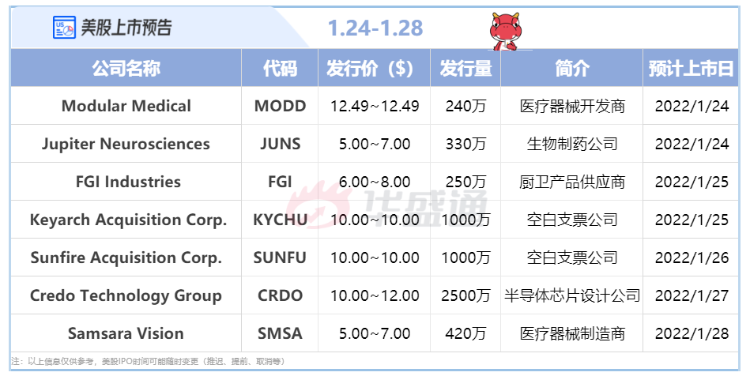 除了以上预计本周上市的7只新股外,上周值得关注的消息有私人宠物超市连锁店PetSmart或通过SPAC登陆美股资本市场。据报道,宠物巨头PetSmart正与美国私募KKR持有的一家SPAC公司洽谈合并,该笔交易的预期估值或达140亿美元。