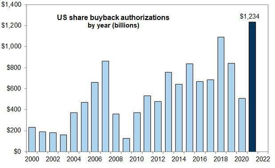 “美国企业将在本周一至周二重返市场,这是他们2022年第一次可以灵活地回顾疲软的股票。今年美国企业对股票回购的需求预计将达到9750亿美元,料创历史高位,即约2450亿美元/季度。”