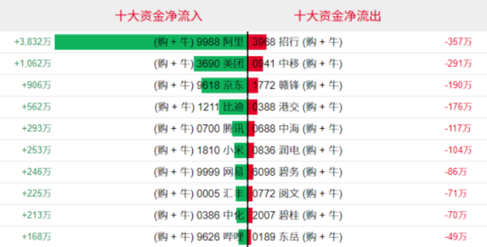 好仓(认购证及牛证)方面,周一阿里,美团相关好仓单日分别录得约3832万、1062万港元资金净流入;相反,个股相关好仓净流出资金规模普遍规模较小。