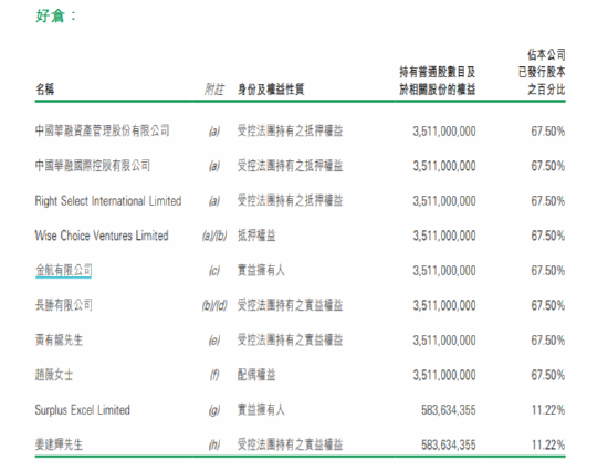 值得注意的是,中国华融为公司控股股东,持股67.5%。