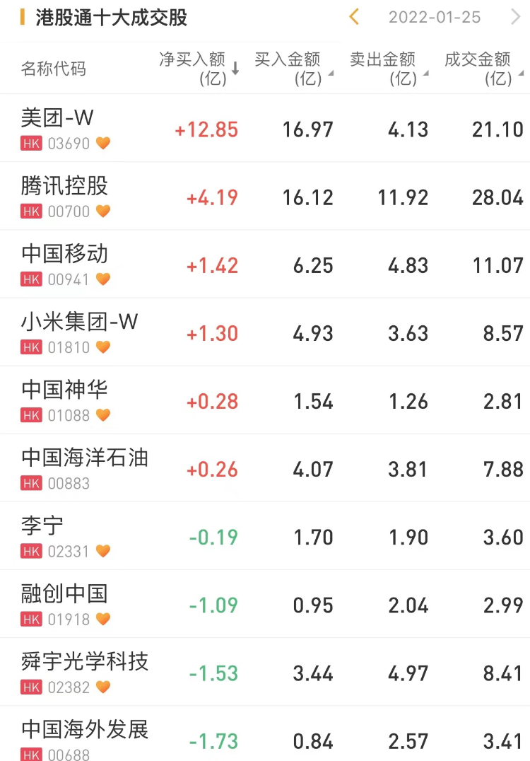 南下资金净买入美团-W $03690.HK 12.85亿港元,为今日买入之最。此外,南下资金净买入腾讯控股 $00700.HK 4.19亿港元。