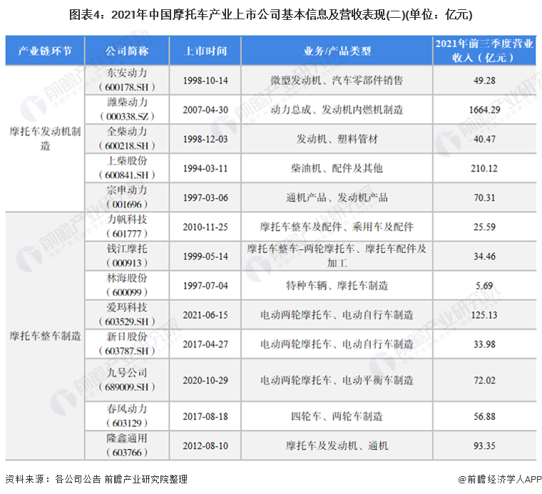 原标题:【全网最全】2022年摩托车行业上市公司全方位对比(附业务布局汇总、业绩对比、业务规划等) 来源:前瞻产业研究院