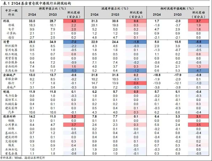 21Q4基金主要加仓港股公用事业、传媒和电子: