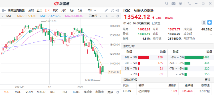 隔夜美联储主席鲍威尔“放鹰”暴击市场,三大股指盘中转跌,集体跳水;纳指盘中大幅震荡,最终收盘微涨。