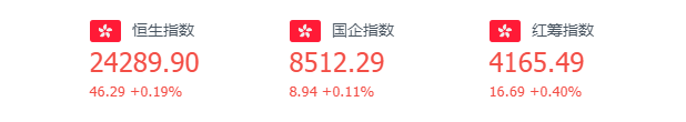 截至1月26日收盘,恒生指数涨0.19%,报24289.90点;国企指数涨0.11%,红筹指数涨0.40%。恒生科技指数涨0.80%,网易涨4.26%,快手涨4.04%。