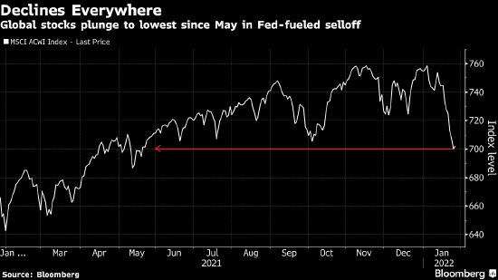 美联储预计可能很快会进行三年多来的首次加息,并将在加息后开始缩减资产负债表,最早可能在3月的会议上进行,不排除每次会议升息可能性。致使三大股指盘中转跌,集体跳水,道指日内更是震荡近千点最终收跌,标普500收盘也未扭转跌势。