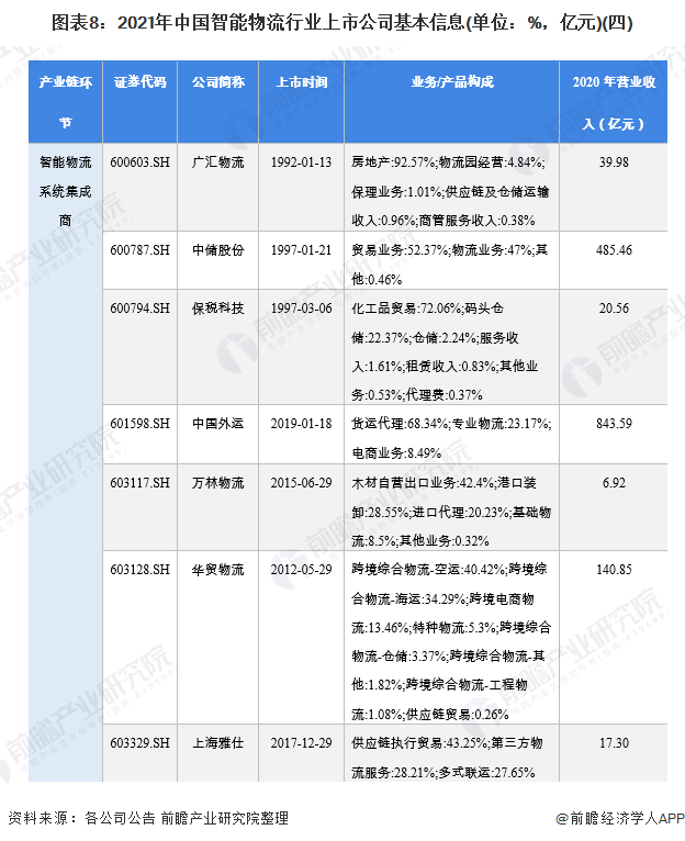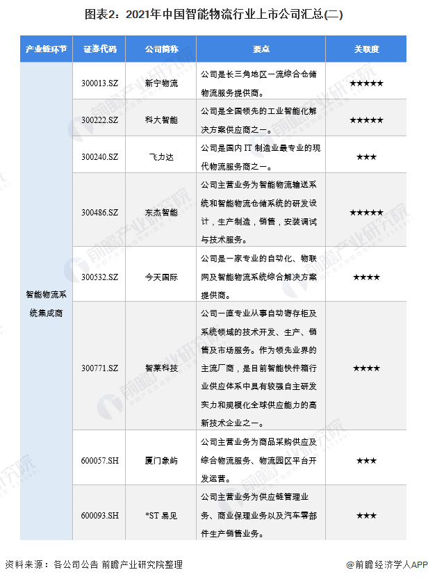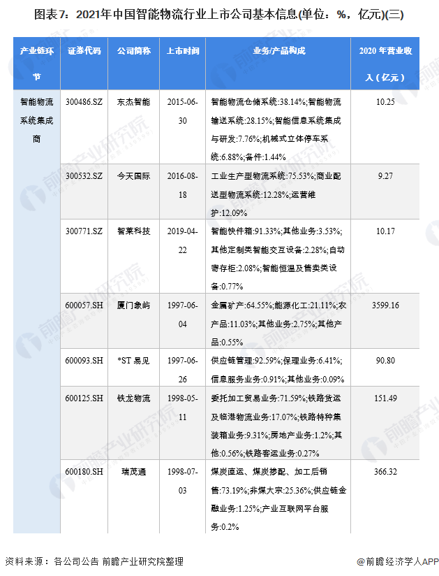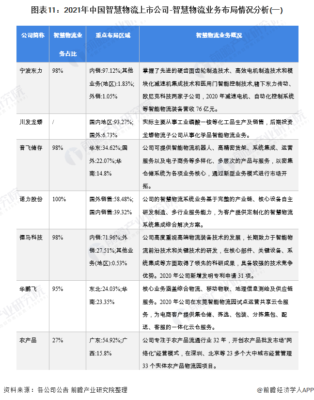 原标题:【最全】2022年智能物流行业上市公司全方位对比(附业务布局汇总、业绩对比、业务规划等) 来源:前瞻产业研究院