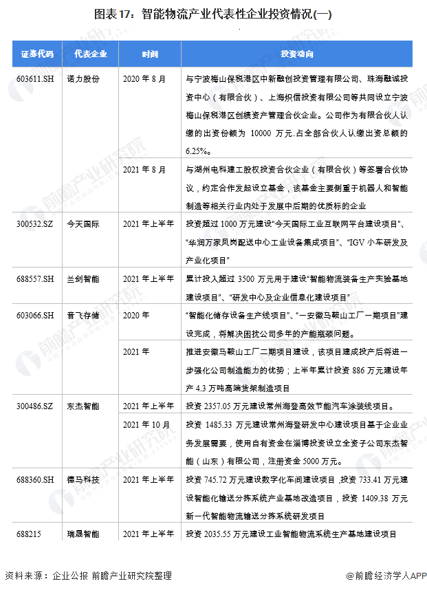 本文核心数据:智能物流产业代表性企业分布情况、企业业务数据、投资动向