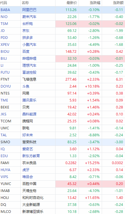 华盛资讯1月27日消息,热门中概股走势分化,瑞幸咖啡美股OTC市场一度涨近14%。斗鱼 $DOYU 涨超10%,叮咚买菜 $DDL 涨超7%,优信二手车涨超4%,虎牙 $HUYA 涨超2%,腾讯音乐、贝壳涨超1%。好未来 $TAL 跌超8%,小鹏汽车跌超4%,京东跌超2%。