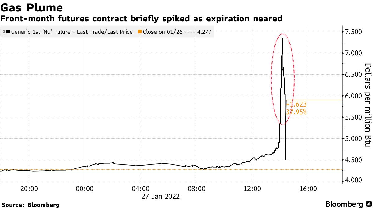 NYMEX 2月天然气期货昨日迅速拉升,盘中整体涨幅一度达到72%,为1990年推出该合约品种以来最大盘中涨幅割。市场认为,这一大幅波动可能是市场出现轧空的迹象,即看跌押注被挤出市场。
