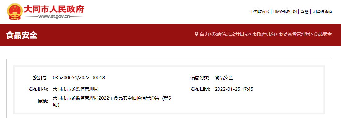 大同市市场监督管理局2022年第5期食品安全监督抽检(春节期间食品安全专项监督抽检)产品合格信息