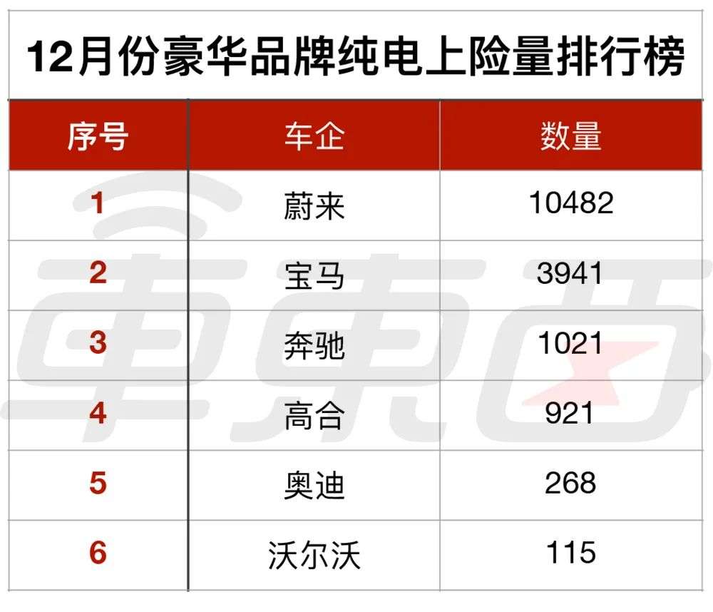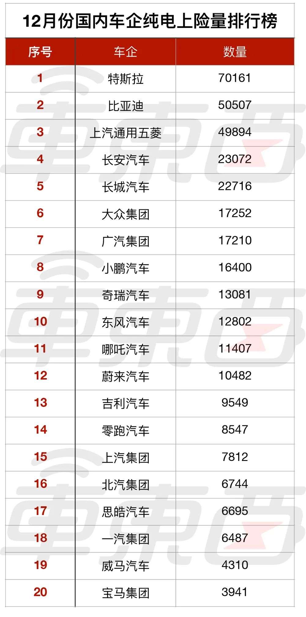零跑汽车虽然没有实现月销过万,但12月份也有8547辆车上险,随着重磅车型C11的大规模交付,该公司或许也能够维持目前的位置。