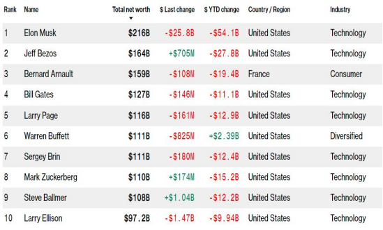 全球十大富豪中,只有巴菲特今年不亏反赚