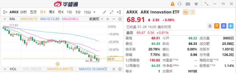 “ARKK基金出现一些空头回补的一个基本原因是,该基金的成分股已经大幅下挫,以至于人们认为它们已经或即将触底," Dusaniwsky表示。“有时候,提前一点退出锁定赢利更好。”