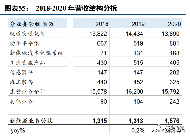 时代电气在 2021 年 9 月初登陆科创板,主营业务按照下游行业可以分为轨道交通,新能源汽车和工业三大 板块,其中轨道交通装备产品主要为机车、动车和城轨的牵引变流系统,可以理解为“高铁的电驱系统”,通过 将电网电压转换为频率可控的三相交流电驱动电机实现牵引列车运行的功能。随着国内轨道交通投资增速放缓, 公司凭借在轨交领域积累的系统集成能力与核心功率半导体器件 IGBT 的研发能力切入需求爆发式增长的新能 源汽车和光伏、风电等工业领域。目前公司一方面能够提供新能源汽车的电驱系统和光伏逆变器以及风电变流 器等系统产品,另一方面公司从应用于轨交和电网的高压 IGBT 产品扩展至电动车逆变器所需的 650V 和 750V 的中高压 IGBT 模块,实现了从轨道交通切入新能源的新成长阶段。