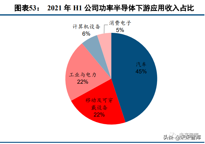 1、 MOS 产品结构优化,从低压向高压升级:目前公司功率半导体产品以 100V 及以下低压分立器件为主,如 小信号分立器件、功率分立器件、ESD 保护器件,以及模拟与逻辑 IC 等产品,其中 45%的收入来自汽车领 域,移动和可穿戴设备占比 22%,工业领域占比为 22%。在“双碳”政策的持续推动下,电动车和新能源 发电领域对于功率半导体的需求出现爆发式增长,尤其是中高压的产品如 SGT-MOSFET 和 SJ-MOSFET 需 求大幅增加,公司相应的也推出了 200V 以上的中高压 Mosfet 产品,预计未来公司的产品结构有望进一步 优化。