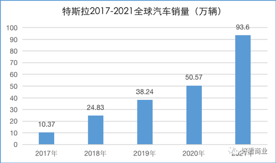 2021年,特斯拉全年销量同比增长87%,以93.6222万辆的成绩碾压对手,夺得全球销冠,是第二名比亚迪的1.6倍,在全球纯电动车市场的占比达到20.3%。