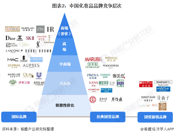 整体来说,目前国内的化妆品市场竞争梯队划分较为明显,高端市场几乎由国际大品牌垄断,我国本土的化妆品品牌只在大众化、平民化市场中才占有一席之地。