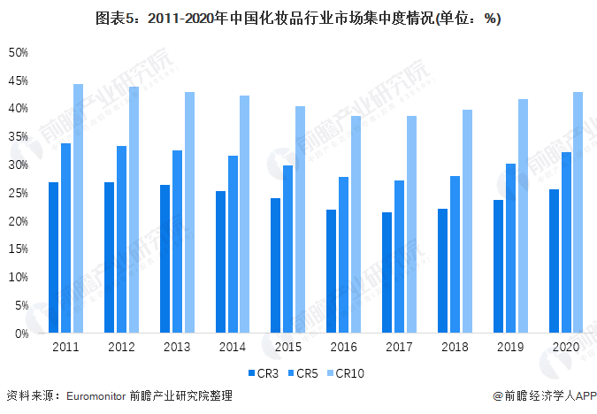我国化妆品行业CR10在40%左右波动
