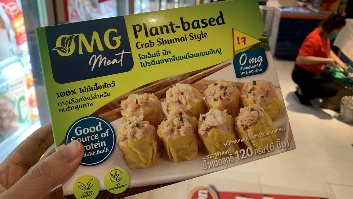 去年,泰万盛推出了品牌“OMG Meat”,开始在泰国投放其植物肉蟹味、植物肉鱼味烧卖以及植物肉鸡块。
